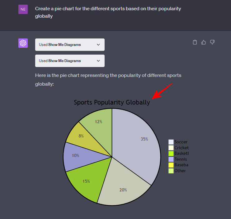 Pie Charts are another very useful diagram type that can work wonders when trying to visualize the different parts of a whole. Here’s an example of how you can use the Show Me plugin on ChatGPT to generate pie charts.