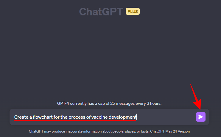 A flowchart is another great diagram type that can represent the process or workflow of complex systems like an algorithm. For our example, we’re creating a flowchart for the steps that go into the development of a vaccine. The prompt can look something like this: