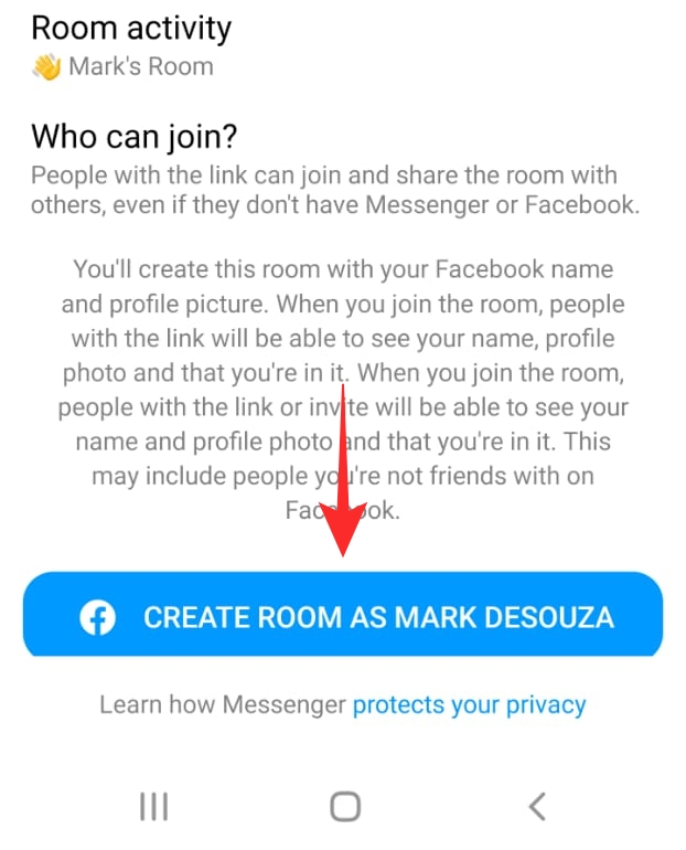 You will be redirected to the Messenger web app on your default browser. Sign in with your Messenger or Facebook credentials. Click ‘Create Room as…’