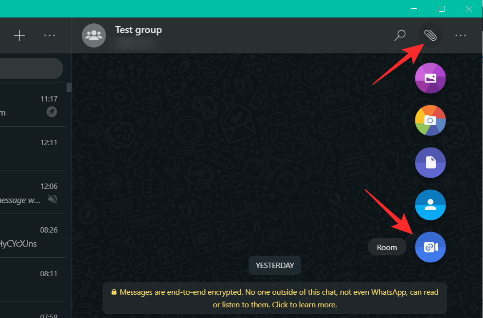 Launch WhatsApp on your phone and select the person or group that you would like to invite to a Messenger Room. Now tap the ‘Attach’ button, and select ‘Room’.