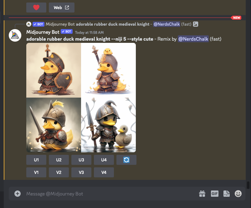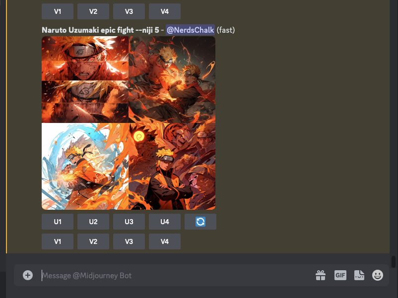 Now that Remix Mode has been enabled, you can proceed to modify your existing images with Midjourney’s Niji model. To do that, you will need to locate the image grid or the upscaled image that you want to make variations using Remix Mode.