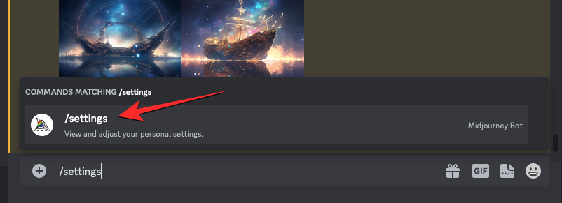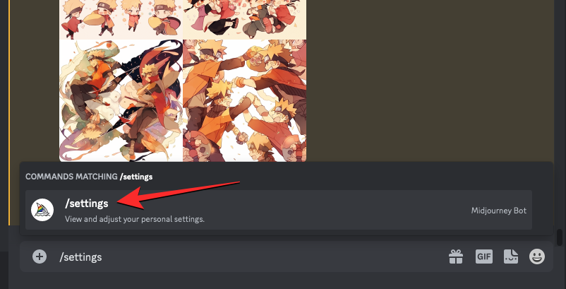 Here, type /settings, click on the /settings option, and then press the Enter key on your keyboard.