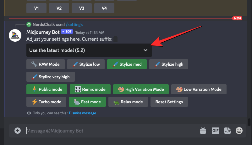 In the Midjourney response that shows up, click on the drop-down box at the top to access more options.