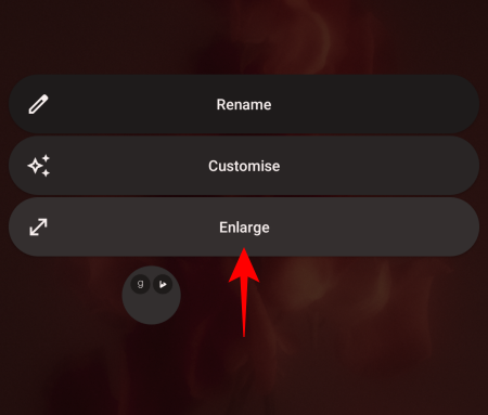 1. By default, all folders are the size of a normal app icon. To enlarge it, tap and hold on it and select Enlarge.