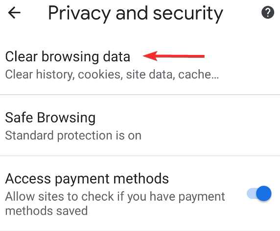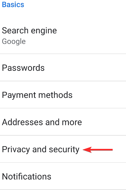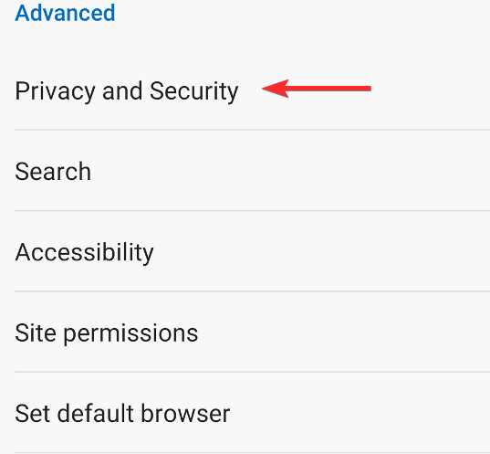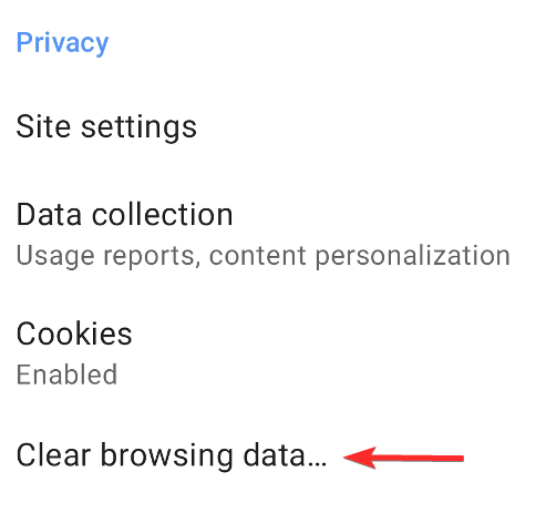 Scroll down to the Privacy section under which you will find ‘Clear browsing data…’. Tap and select it.