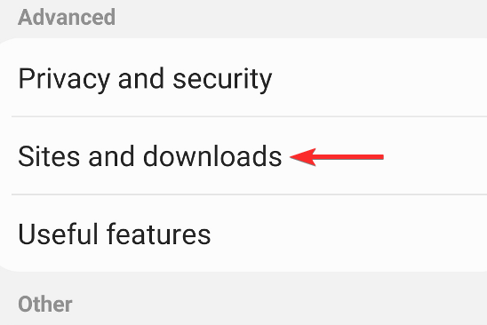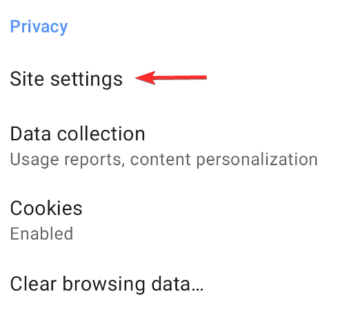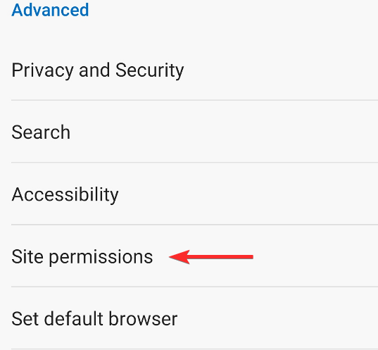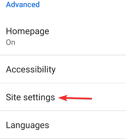 Under the Advanced section of Settings, you need to tap on Site settings.