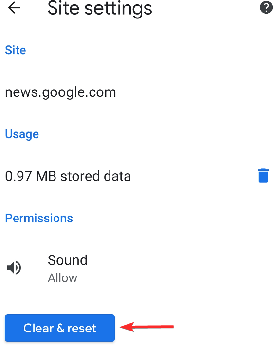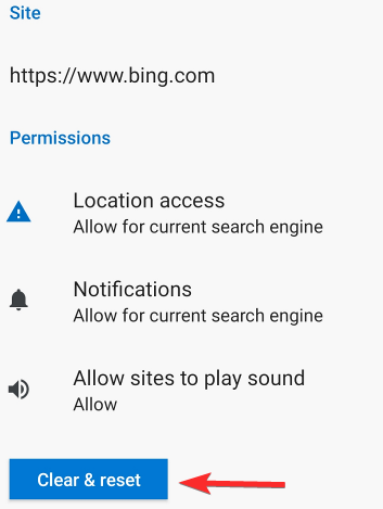 Tap on Clear & reset to remove all data including cookies stored by the site.