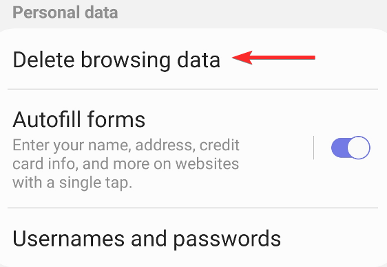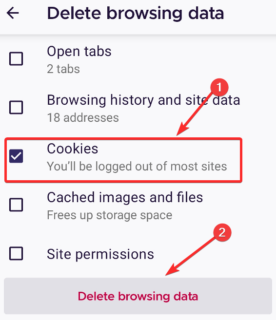 Tap on Clear under Browsing Data to delete the cookies and cache.