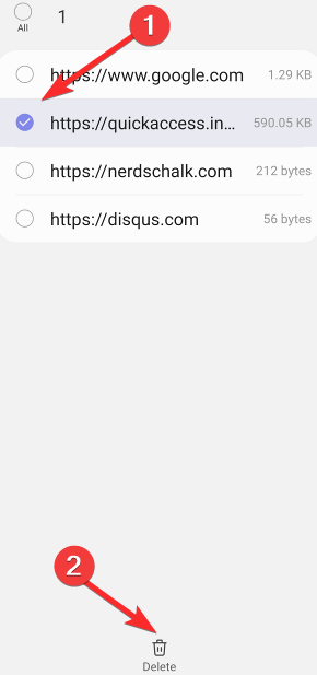 You have the option of deleting all the cookies or the data of a single site on the Samsung Internet Browser.