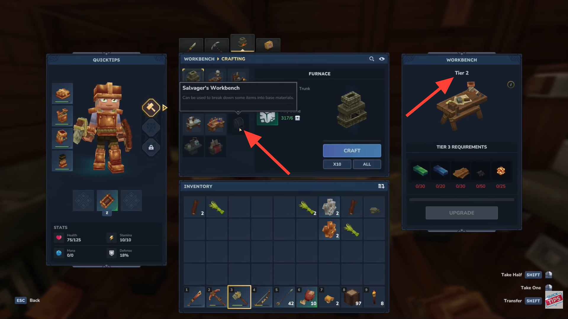 Reach Tier 2 in the Workbench crafting tab, craft the Salvager’s Workbench using the required materials.
