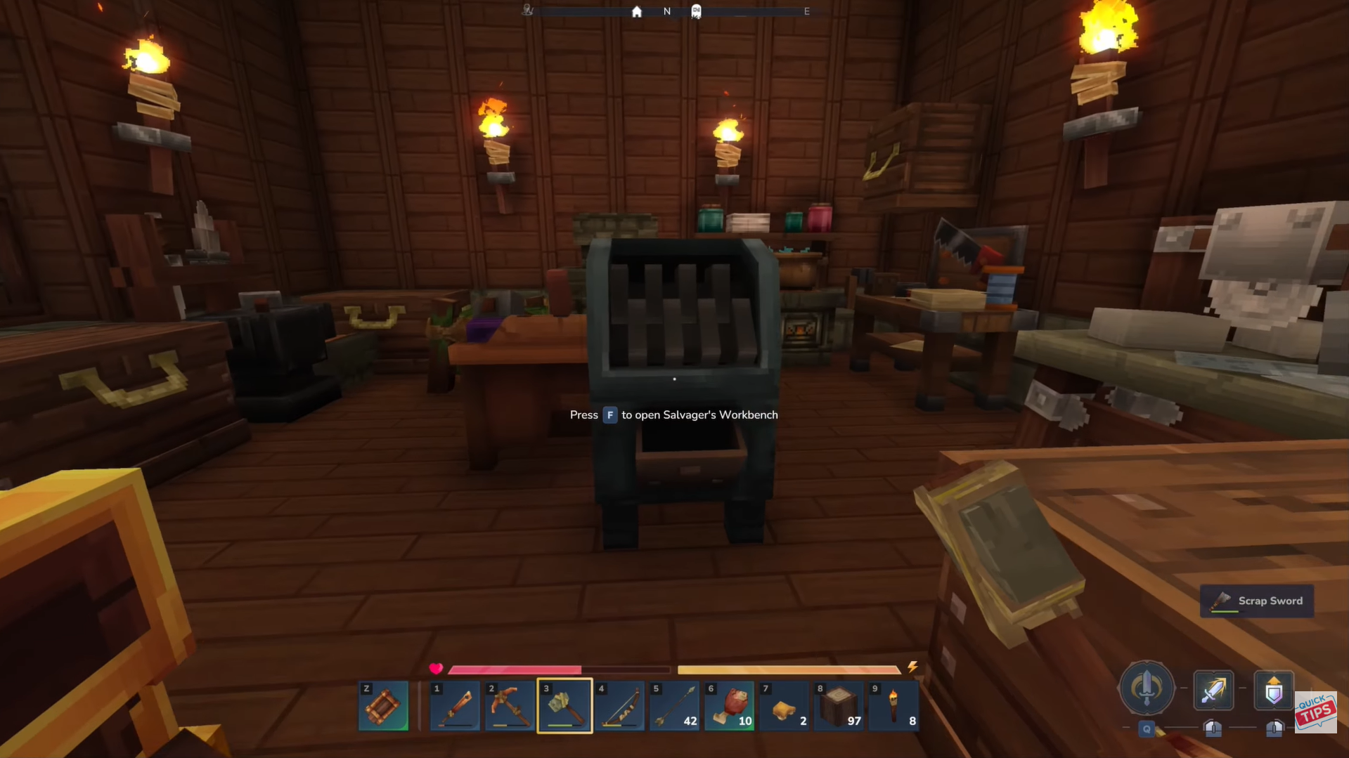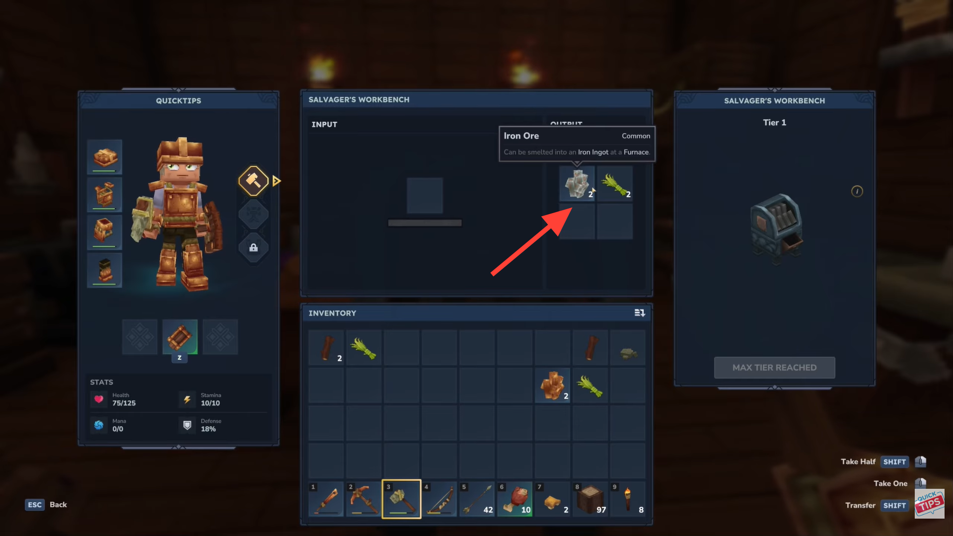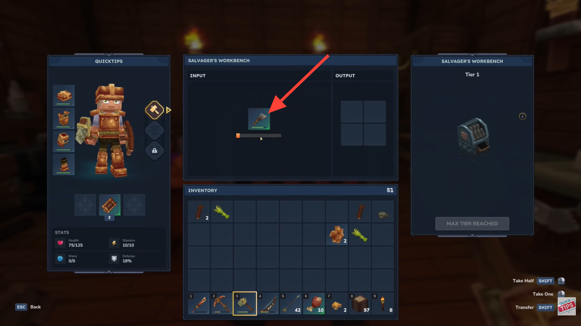 Instead of just dropping an item, you can break it down into its base materials using the Salvager’s Workbench, which is useful for tools, weapons, and armor.