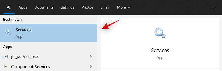Click on the ‘Start’ menu and search for ‘Services’. Click on the first app that shows up in your search results.