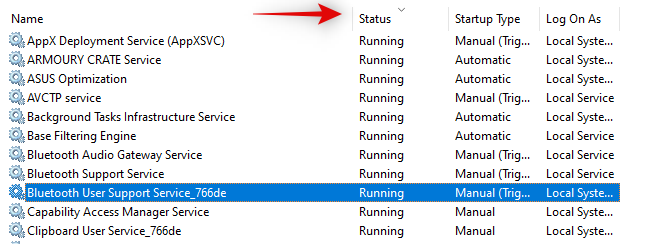You will now see a list of all the services currently installed on your PC. You can sort them by various filters including name, type, status, and more by simply clicking the desired filter at the top of your screen. This should help you easily find the service that you wish to remove.