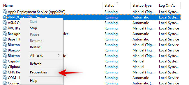 Once you have found the service, right-click on it and select ‘Properties’.
