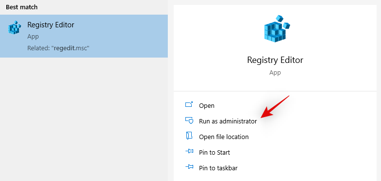 Click on the start menu and type in ‘regedit.msc’. You should see a search result for the registry editor before you finish writing the entire name. Click on ‘Run as administrator’ in the right tab of the start menu.
