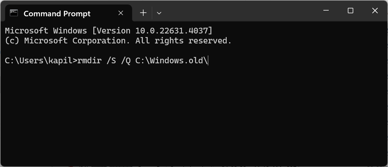 6. Finally enter the following command: rmdir /S /Q C:\Windows.old\