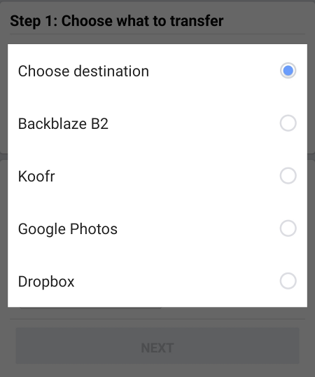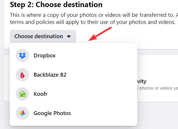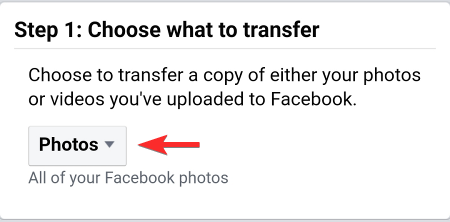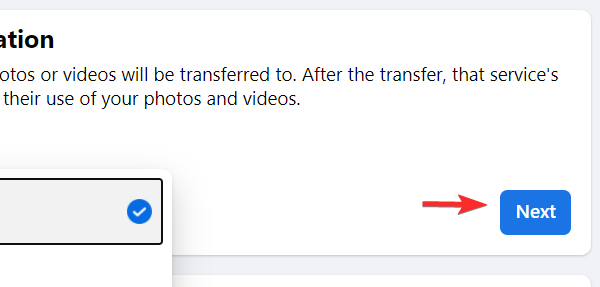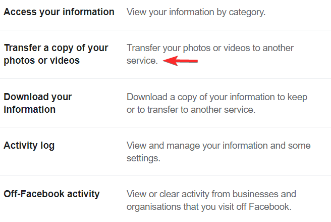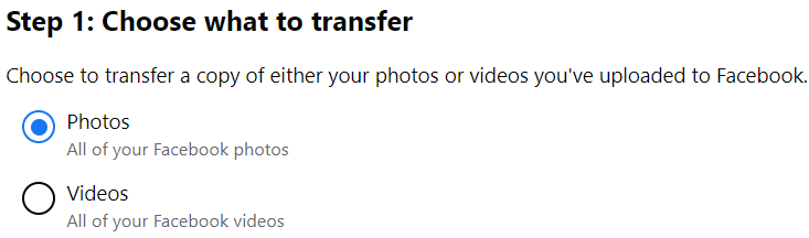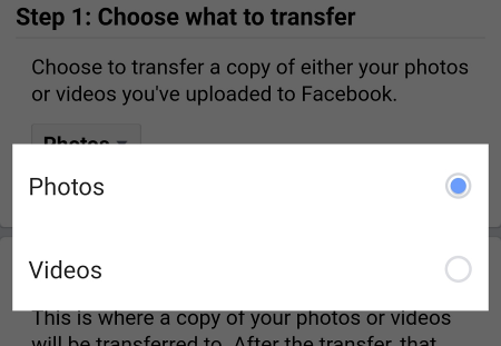 While downloading account information, you can choose to only download photos and videos. But, if you want to transfer the media without having to download it, you can do that as well. This feature allows you to copy your photos or videos or both to any other server. Here is how you do it from your device app or from the website