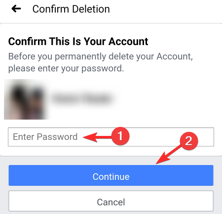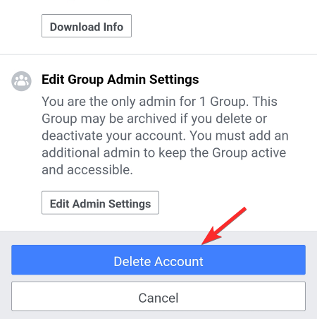 Facebook keeps promoting alternatives to deleting your account. But to proceed, scroll down and tap on the Delete Account button.