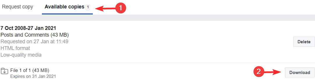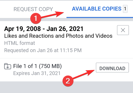 How to transfer a copy of photos and videos before deleting a Facebook account