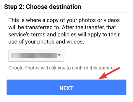 Note: Once you press next, you will be taken off of Facebook to the server where you want the copy to go. You may have to sign in to continue the process.