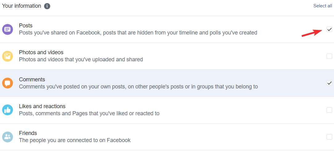 You will see a list of information that you can download. Select all the information you want to be copied.