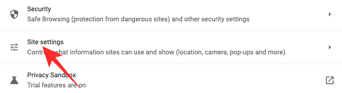 Scroll down until you see the ‘Site settings’ option.