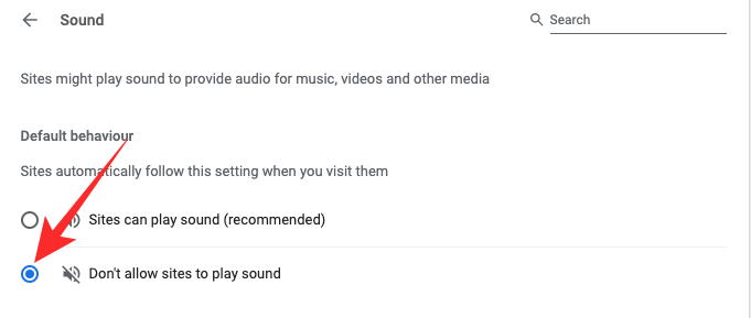 Finally, set the default behavior to ‘Don’t allow sites to play sound.’