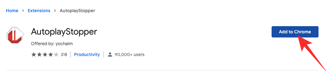 AutoplayStopper is available for free on the Chrome Web Store and is capable of stopping autoplay videos in their tracks. First, click on this link to go to the download page. Now, hit ‘Add to Chrome.’
