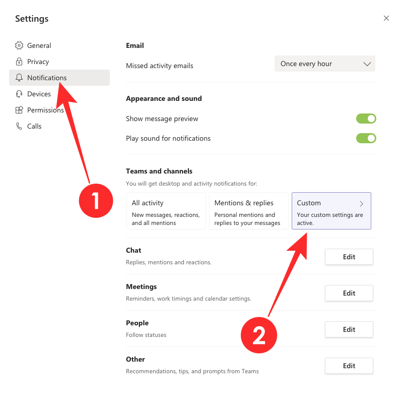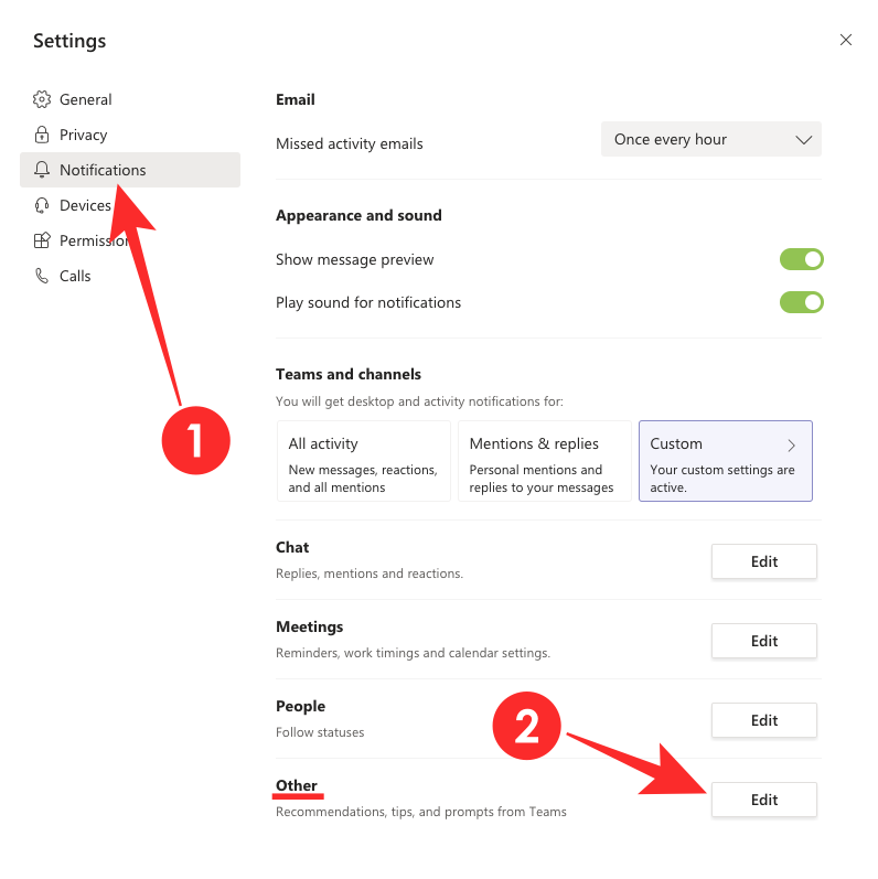 If you rarely take a look at notifications on Teams, then your best option is to apply a custom notification setting that lets you disable all of your Teams desktop app alerts once and for all. Luckily for you, Teams lets you customize desktop and activity notifications for your own preference.