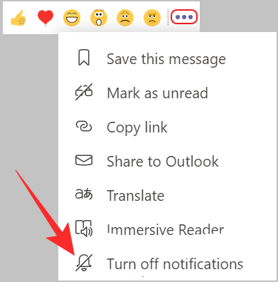 To do that, go to the channel whose conversation you want to stop notifications from. Inside the channel, hover over the top right corner of the concerned conversation, click on the 3-dots icon on the extreme right, and select the ‘Turn off notifications’ option from the drop-down menu.