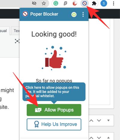 Since every pop-up blocking extension is ever-so-slightly different from the other, the configuration options might not carry from one extension to the next. However, all of them allow you to disable pop-ups without jumping through hoops. That way, you can simply access the extension menu and allow pop-ups for any particular site.