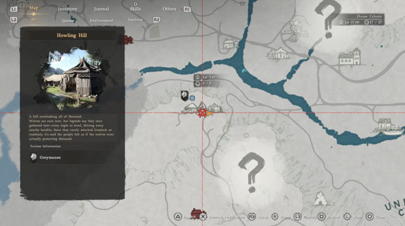 Open your world map and locate Howling Hill. Highlight it as your selected region to enable interaction options.
