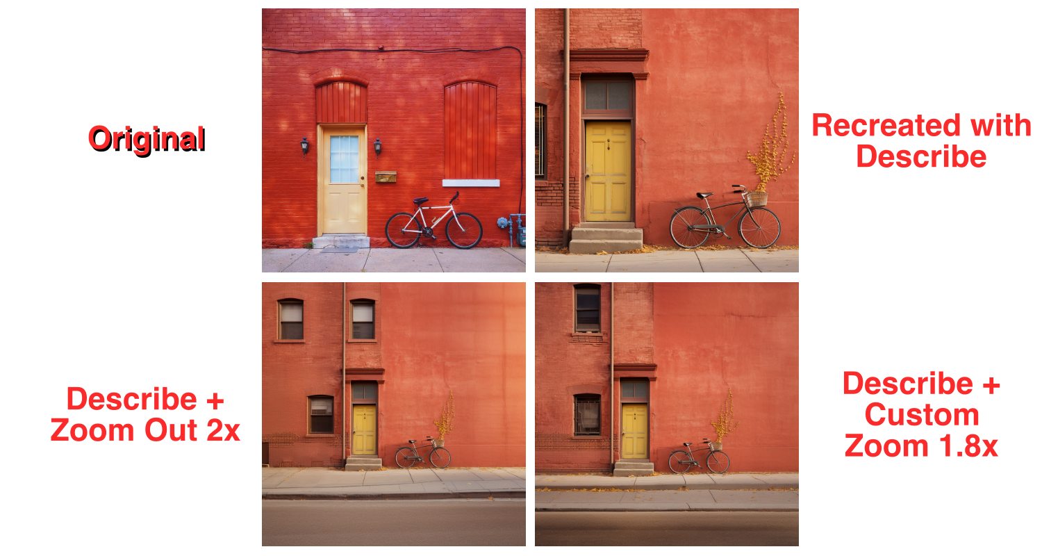 Here’s what we were able to generate on Midjourney using the Describe and Zoom Out tools:
