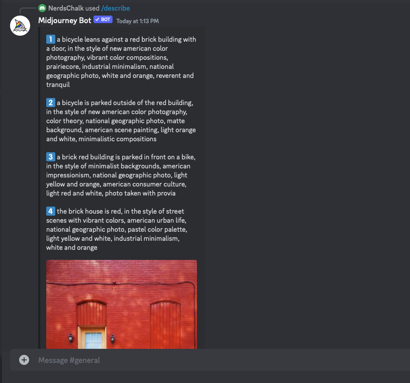 When Midjourney processes your image, it will generate a set of prompts based on the information it could extract from it.