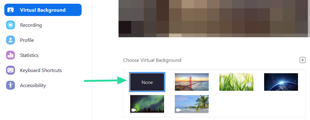 If you want to remove your Virtual background and go back to your regular background, you can do so by going to Profile > Settings > Virtual Background and selecting ‘None’ as a background.