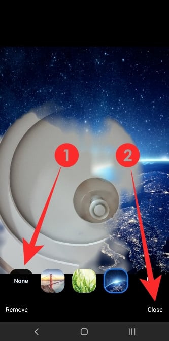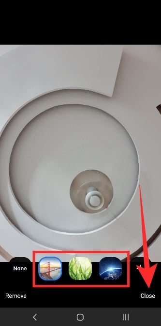 You will now be taken to the Virtual Background screen on Zoom where you can select from a bunch of preset backgrounds already provided by Zoom. Tap on any one of them to apply as your virtual background and then tap on ‘Close’ to return to the meeting screen.