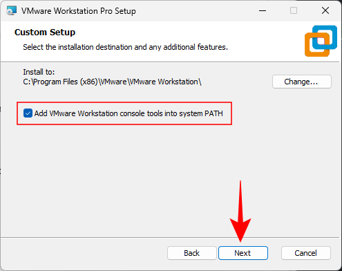 Step 3: Make sure the Add VMware Workstation console tools into system PATH is selected, then click Next.
