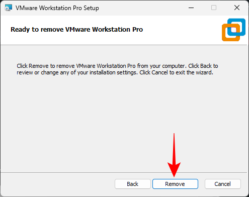 • However, to uninstall VMware Workstation Pro cleanly, you’ll need to run the setup file and click on ‘Remove’.
