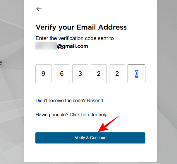 Step 5: Enter the verification code sent to your email address. Then click Verify & Continue.