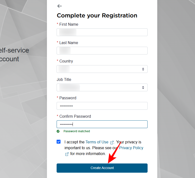 Step 6: Enter your basic details to complete your registration. Then click Create Account.