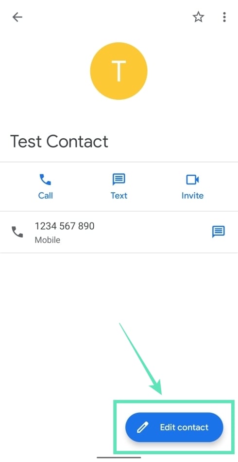 Step 1: Open the Contacts app on your Android device, select a contact you want to edit, and tap the Edit bubble at the bottom right.