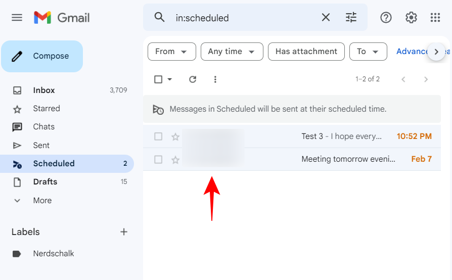 All your scheduled emails are available from the “Scheduled” section in the left pane.
