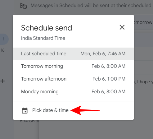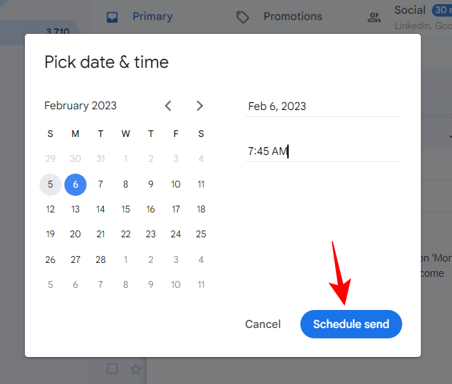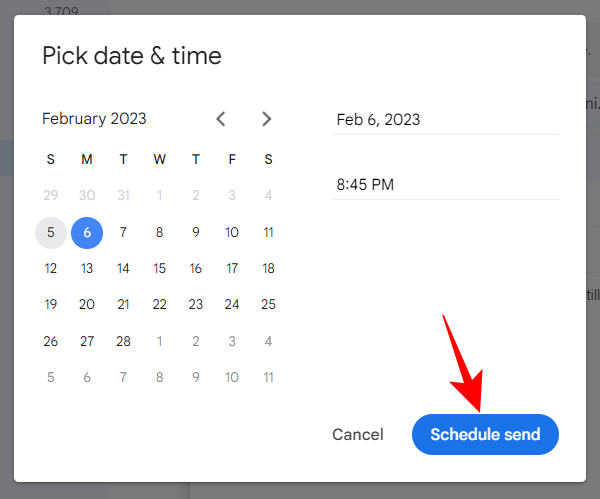 • Schedule emails: Compose an email, select Schedule send from “Send” options, choose your date/time, and click “Schedule send”.