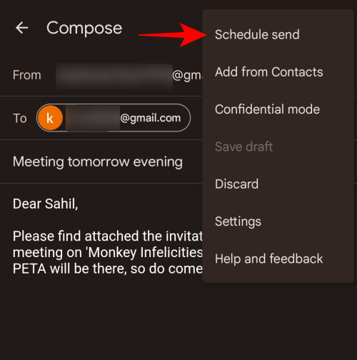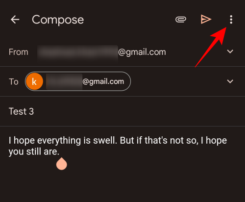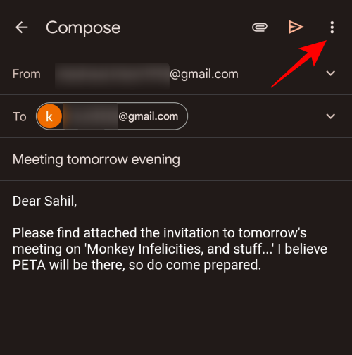 Compose your mail as usual and then tap on the three-dot button at the top right.