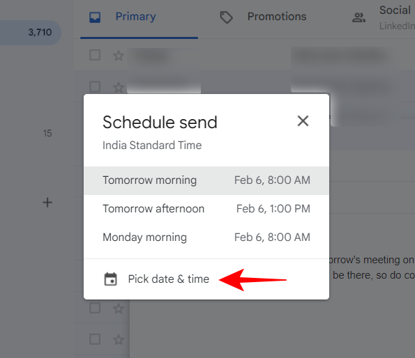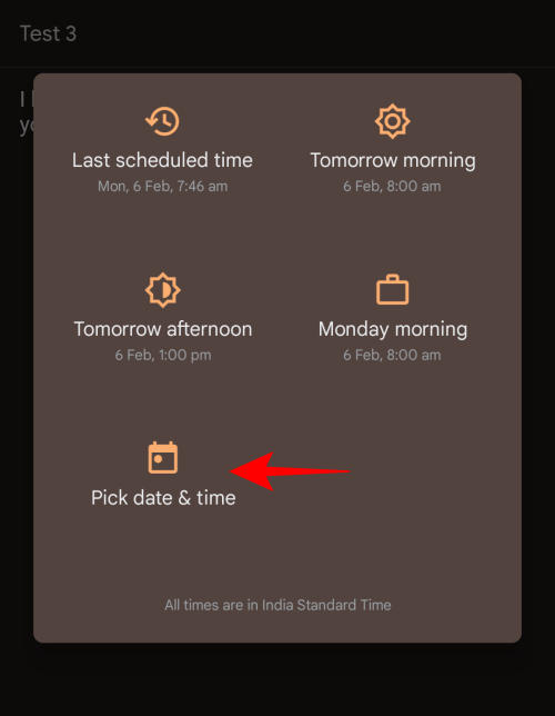 Choose from the available options. Or, if you want to pick a custom date/time, tap on Pick date & time.