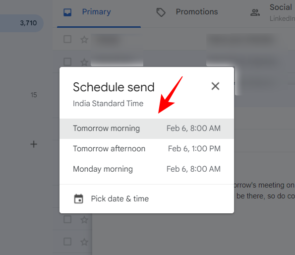 … and choose Schedule send (as you would if you were scheduling it normally).