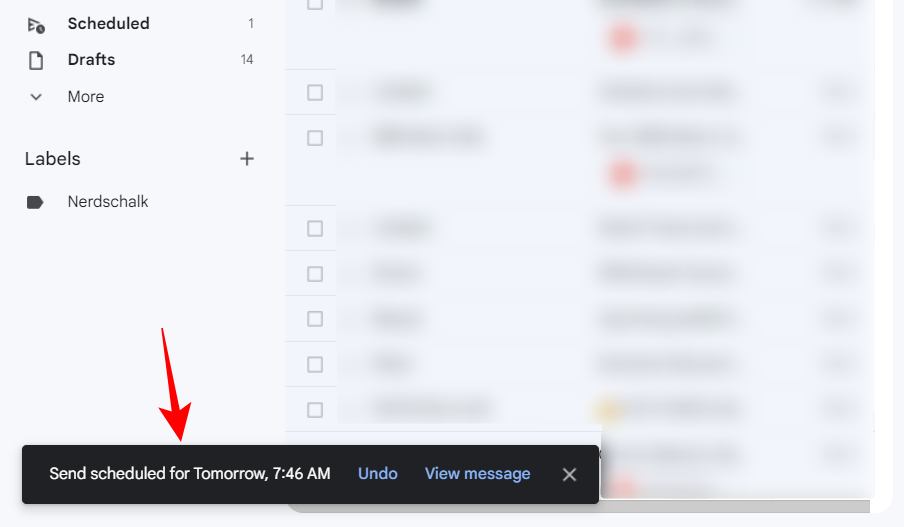 Once your email is scheduled, you’ll see a toast notification appear at the bottom left.