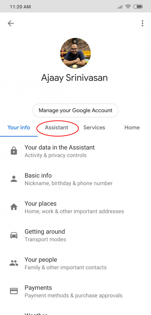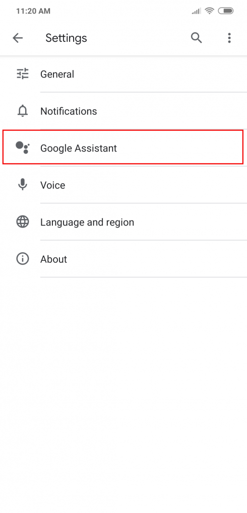 - Click on Google Assistant.