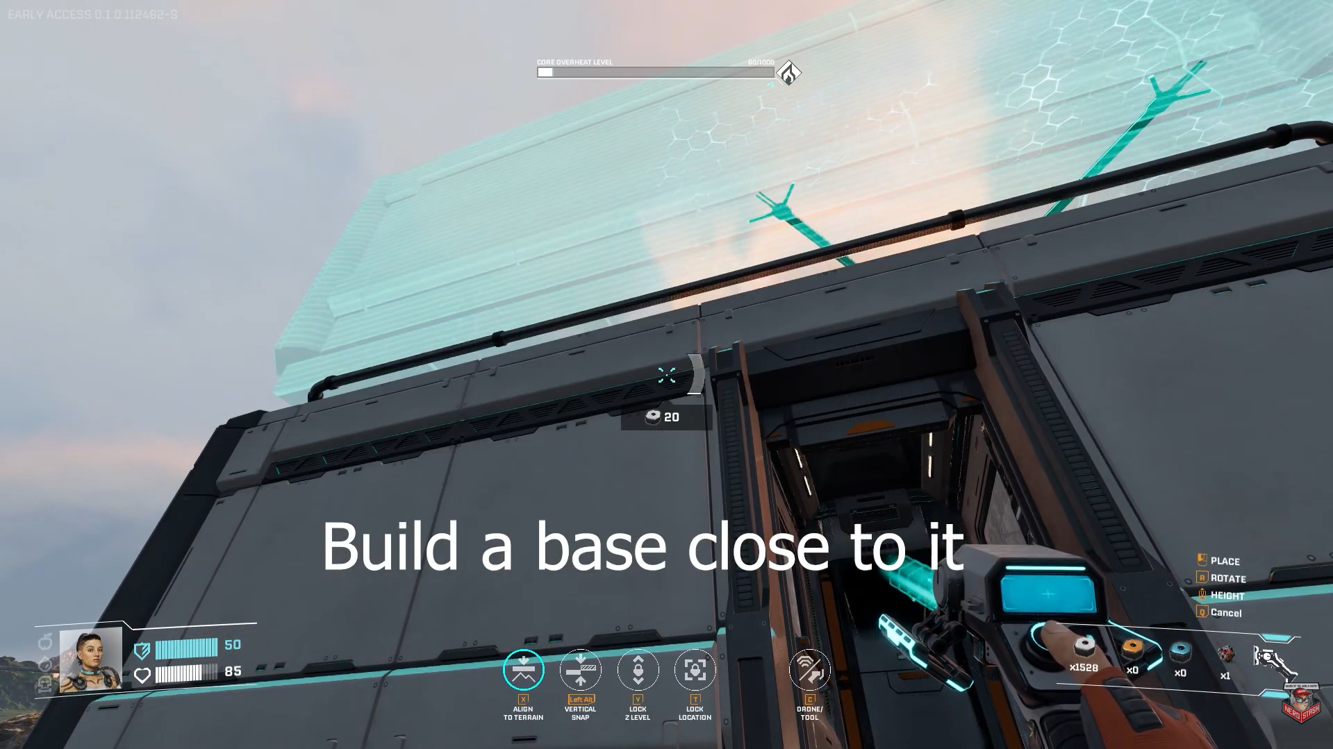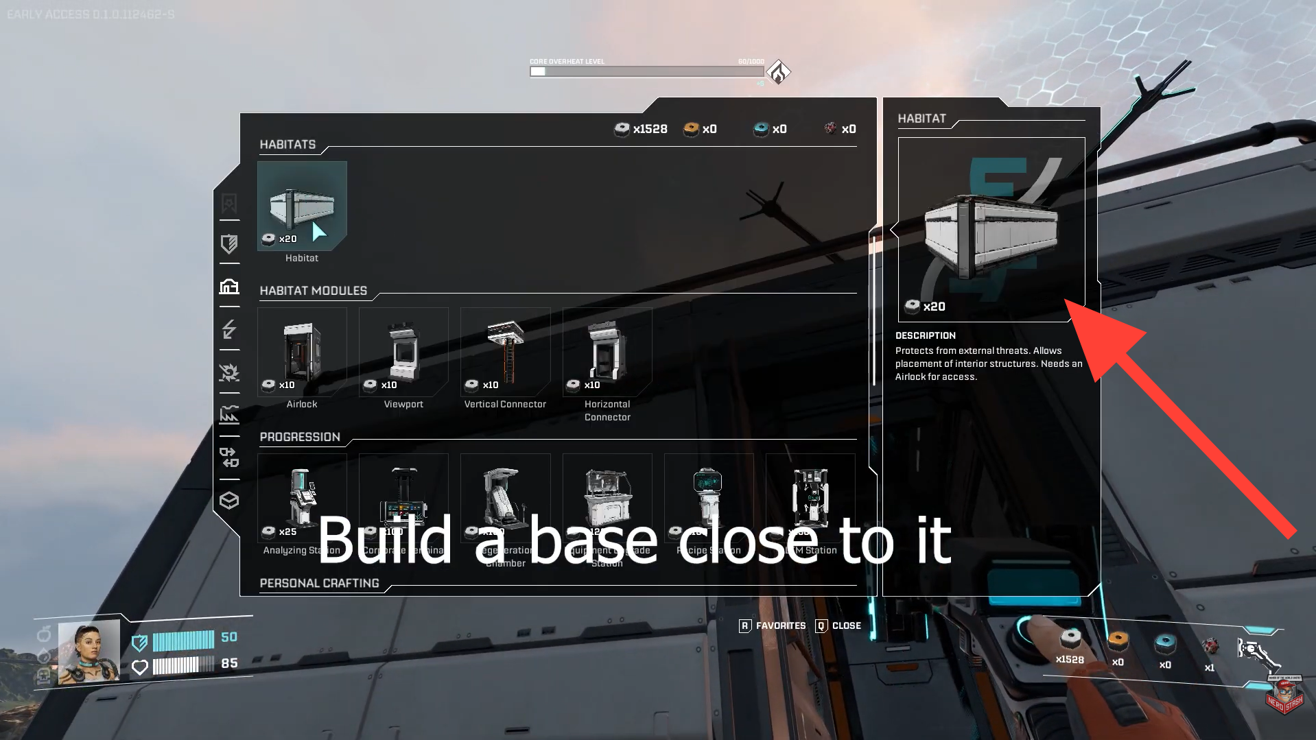 Establish a small base close to the cave entrance to survive the Ruptura wave. Make sure to include at least one Habitat for protection and some Personal Storage to keep your inventory clear for loot.