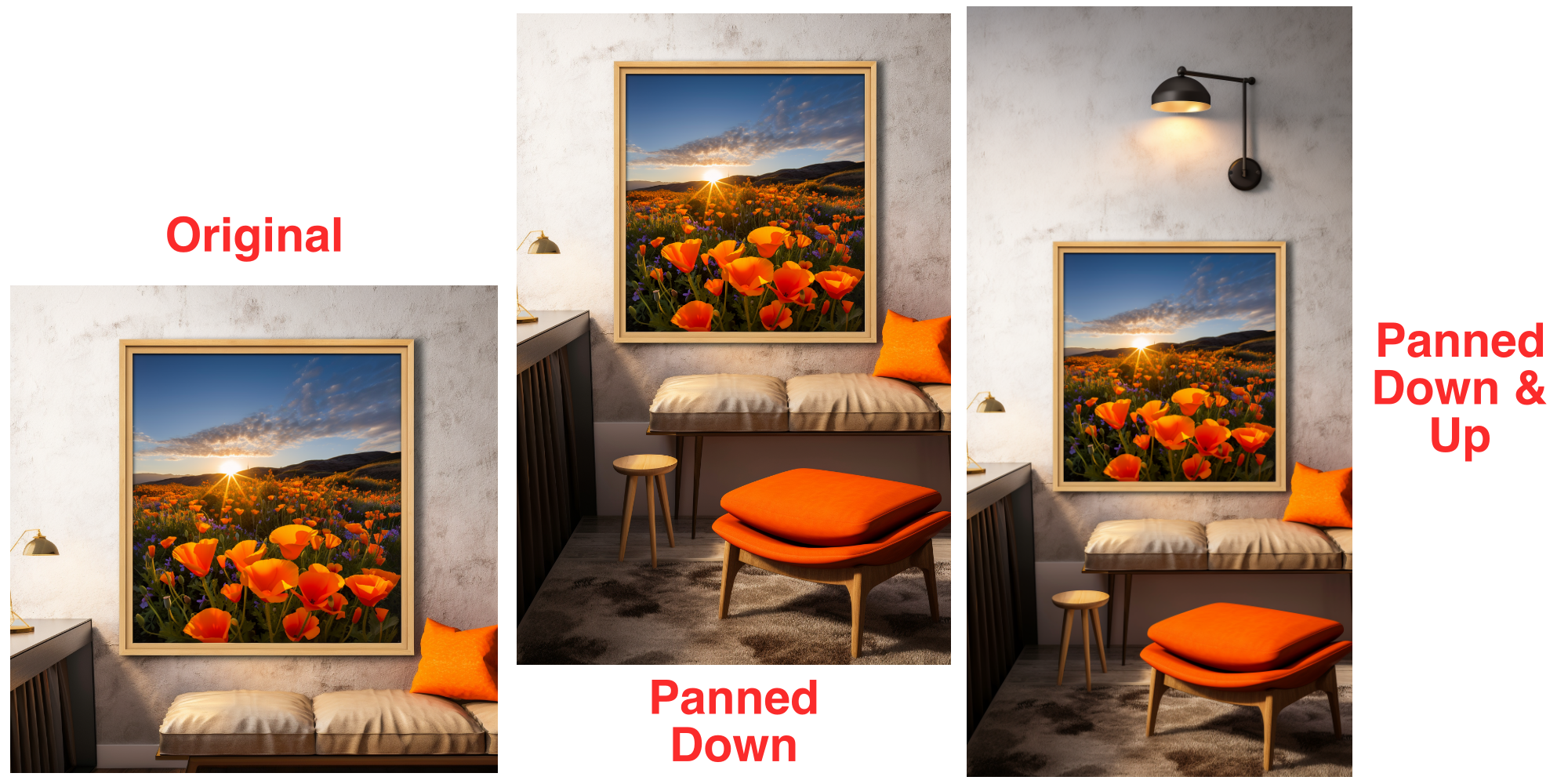 - Panning is only possible either vertically or horizontally for an image. So, if you pan an image using the up or down arrows, the subsequent creations can only be panned vertically and vice versa.